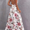 Um vestido longo leve, romântico e perfeito para dias ensolarados, eventos ao ar livre ou para quem deseja um look feminino e marcante. Com estampa floral em tons de rosa e cinza sobre fundo branco, o Vestido Luiza combina charme e frescor com um toque sensual graças à sua modelagem com decote profundo e costas nuas.